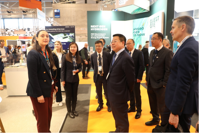 展會(huì)期間,中船集團(tuán)舉辦了電解水制氫設(shè)備、超高溫大型工業(yè)熱泵、智能裝備解決方案等30余場(chǎng)專題推介會(huì),發(fā)布了全球單體最大3000立方電解水制氫設(shè)備,與德國(guó)、瑞典兩家客戶簽約電解水制氫項(xiàng)目合作協(xié)議,與全球眾多客戶進(jìn)行了技術(shù)與產(chǎn)品交流,深入推進(jìn)國(guó)際市場(chǎng)營(yíng)銷,進(jìn)一步提升了中船集團(tuán)新興產(chǎn)業(yè)的國(guó)際影響力。此外,中船集團(tuán)還組織相關(guān)成員單位赴德國(guó)、法國(guó)等地,與林德、德希尼布和施耐德等全球知名跨國(guó)企業(yè)進(jìn)行了推介交流與合作洽談,進(jìn)一步鞏固合作關(guān)系,為后續(xù)深化合作奠定基礎(chǔ)。同時(shí),組織與中國(guó)國(guó)機(jī)集團(tuán)、國(guó)家能源集團(tuán)等中國(guó)企業(yè),就展覽展會(huì)、品牌宣傳、國(guó)際項(xiàng)目合作等方面進(jìn)行交流,攜手拓展國(guó)際市場(chǎng)。
