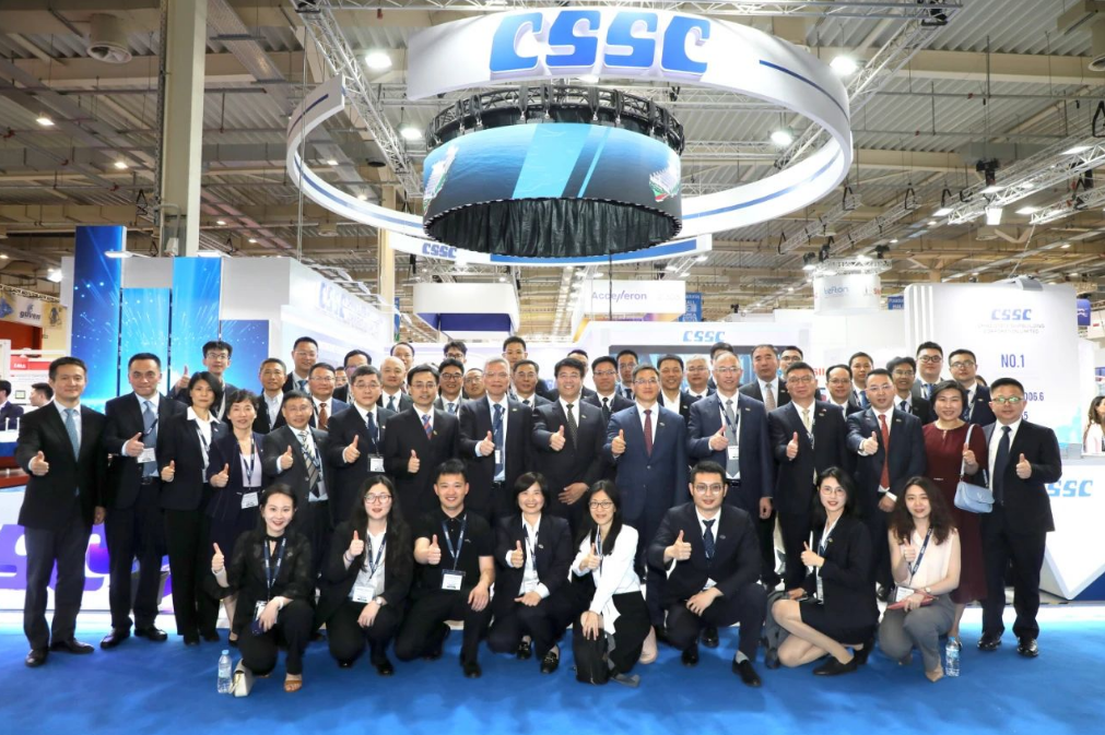 此次展會,中國船舶集團攜旗下19家成員單位參展,有關(guān)成員單位負責人率隊赴展會開展重點船海項目經(jīng)營洽談并拜訪當?shù)睾椭苓厙铱蛻?。集團公司以“共贏未來”為參展主題,設(shè)置集團總體區(qū)、綠色航運解決方案區(qū)、低碳環(huán)保配套設(shè)備區(qū)共3個展示區(qū)域,重點展示了135500總噸大型郵輪、175000方LNG運輸船、24000箱超大型集裝箱船、210000噸氨燃料散貨船、LNG雙燃料VLCC等一系列高技術(shù)、高附加值明星產(chǎn)品,以及CPGC-WinGD 10X92DF-M甲醇雙燃料發(fā)動機、船用碳捕捉系統(tǒng)等全球船東高度關(guān)注的綠色低碳配套設(shè)備。同時,通過展臺上醒目的品牌標識、層級化的品牌體系圖、富有感染力的品牌推介視頻,首次面向全球客戶,立體化展示“中國船舶”品牌及下屬企業(yè)品牌和產(chǎn)品品牌體系,進一步強化了集團公司品牌形象。