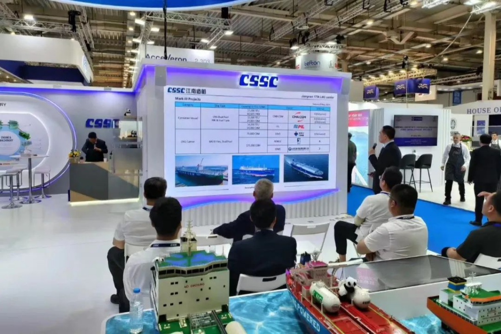 展會期間促成集團公司多家成員單位船海項目成功簽約,共計超50億元人民幣,包括中船貿(mào)易、廣船國際與EPS公司4艘11萬噸LRII型LNG雙燃料油輪項目簽約、與ASP公司2艘5萬噸MR甲醇雙燃料油輪項目簽約,中船貿(mào)易、大連造船與CAPITAL公司2艘30萬噸VLCC建造項目簽約,另外還簽訂了40多億元新造船項目意向書;同時,參展成員單位在集團公司展臺上開展了豐富的推介活動,包括江南造船“綠色船型家族”產(chǎn)品推介會、中船系統(tǒng)院“羅經(jīng)進入光纖時代”產(chǎn)品推介會、七一一所“全球首個全流程船用碳捕捉系統(tǒng)案例分享會”,吸引了眾多國際船東、船級社和設(shè)備廠商前來觀摩,并共同探討未來合作機遇。