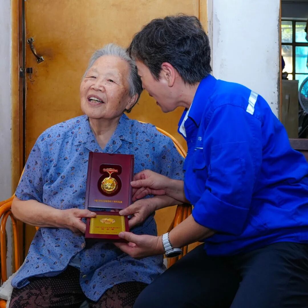 在紀(jì)念中國人民抗日戰(zhàn)爭暨世界反法西斯戰(zhàn)爭勝利80周年之際,中國船舶集團(tuán)有限公司黨組副書記、董事賈海英走訪慰問抗戰(zhàn)老兵焦英杰,頒發(fā)“中國人民抗日戰(zhàn)爭勝利80周年”紀(jì)念章,并代表集團(tuán)公司黨組向他致以崇高敬意和誠摯問候。