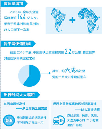 編織一張密度適宜的高鐵網(wǎng)絡(luò),造福盡可能多的民眾。十八大以來(lái),我國(guó)高鐵版圖不斷延伸:2013年7月,穿越江南水鄉(xiāng)的寧杭高鐵開(kāi)通;2014年6月,世界上一次性建成通車?yán)锍套铋L(zhǎng)的高速鐵路蘭新高鐵建成通車;2016年12月,滬昆高鐵全線通車,彩云之南不再“邊緣”。截至2016年底,中國(guó)高鐵運(yùn)營(yíng)里程突破2.2萬(wàn)公里,超過(guò)世界其他國(guó)家高鐵里程之和,除幾條線路外,2004年提出的“四縱四橫”高鐵網(wǎng)已全部建成。根據(jù)2016年7月新修訂的國(guó)家《中長(zhǎng)期鐵路網(wǎng)規(guī)劃》(2016-2030年),預(yù)計(jì)到2020年,全國(guó)高速鐵路將增加到3萬(wàn)公里。今年繼續(xù)保持高鐵網(wǎng)絡(luò)快速建設(shè)勢(shì)頭,就在上月初,寶蘭高鐵通車,將使千年絲路煥發(fā)更加蓬勃的生機(jī)。不久后,我們還將見(jiàn)證張呼客專馳騁于遼闊的大草原,而西成高鐵也將讓千年蜀道不再艱難。