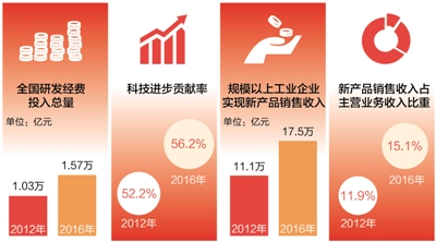 “創(chuàng)新驅動發(fā)展戰(zhàn)略大力實施,創(chuàng)新型國家建設成果豐碩,天宮、蛟龍、天眼、悟空、墨子、大飛機等重大科技成果相繼問世?!边^去5年間,創(chuàng)新驅動可謂最大發(fā)展亮點之一。
