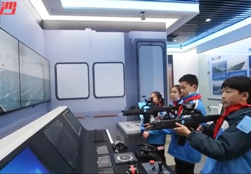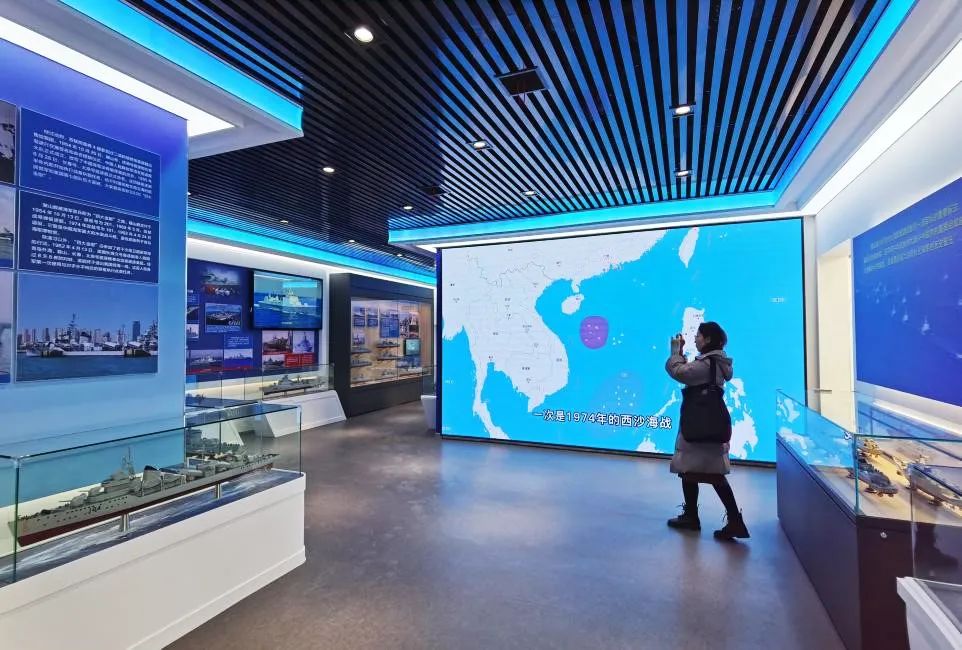 現(xiàn)代海軍裝備主題展館分室內(nèi)、室外兩個展區(qū),設(shè)立六個篇章,重點展示了人民海軍成立以來艦船裝備從沿岸近海到走向深遠(yuǎn)海的代表成果。除圖文影視、模型外,展覽還引入了航母艦載機(jī)起降虛擬體驗、海盜射擊游戲、艦載機(jī)起飛指揮等多個體驗互動類項目。