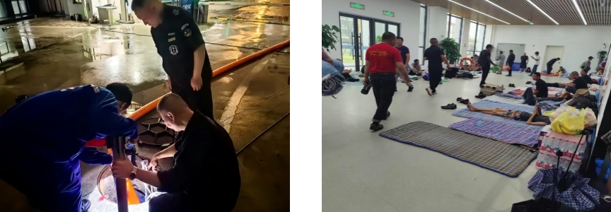 第一時間啟動防汛防臺緊急預(yù)案,向全體員工發(fā)出動員令。相關(guān)部門深入現(xiàn)場檢查設(shè)備設(shè)施,排除風(fēng)險隱患。針對低洼易積水區(qū)域開展“竹節(jié)草”臺風(fēng)前安全專項檢查,確保室外門能關(guān)盡關(guān),同步組織排查所有易松動和易掉落物料的清理;在樓宇門口設(shè)置防汛沙袋,做好防水工作;在動力作業(yè)區(qū),開展變電站防汛沙袋布置和水位檢查等,確保現(xiàn)場安全。