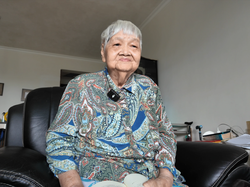 劉暉回憶道,1938年冬天,日軍入侵廣東東莞,她的父母不愿在日軍統(tǒng)治下生活,便帶著全家逃難至香港。1941年12月,日軍進(jìn)攻香港,劉暉一家又隨著難民潮,沿著望不到頭的鐵路,徒步返回家鄉(xiāng)東莞。在顛沛流離中,她的父母相繼離世?!耙粋€好端端的家,就因為日本帝國主義的侵略,變得家破人亡?!彼蛔忠活D,語氣沉重。