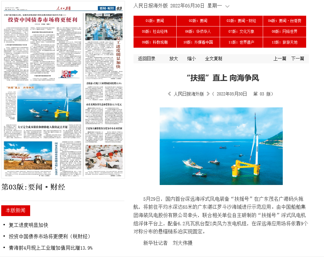 這是“扶搖號”繼機組、浮體下線后,再次取得的又一里程碑成果,將對我國海上風(fēng)電邁向深遠海,助力“30·60”雙碳目標達成產(chǎn)生重大意義。