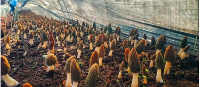 在這充滿希望的季節(jié)里,鶴慶縣六合鄉(xiāng)松坪村羊肚菌種植基地一壟壟羊肚菌破土而出,頭戴獨特的褐色“網(wǎng)格帽”,在陽光下閃爍著光芒,為松坪村繪就一幅生機勃勃的致富畫卷。